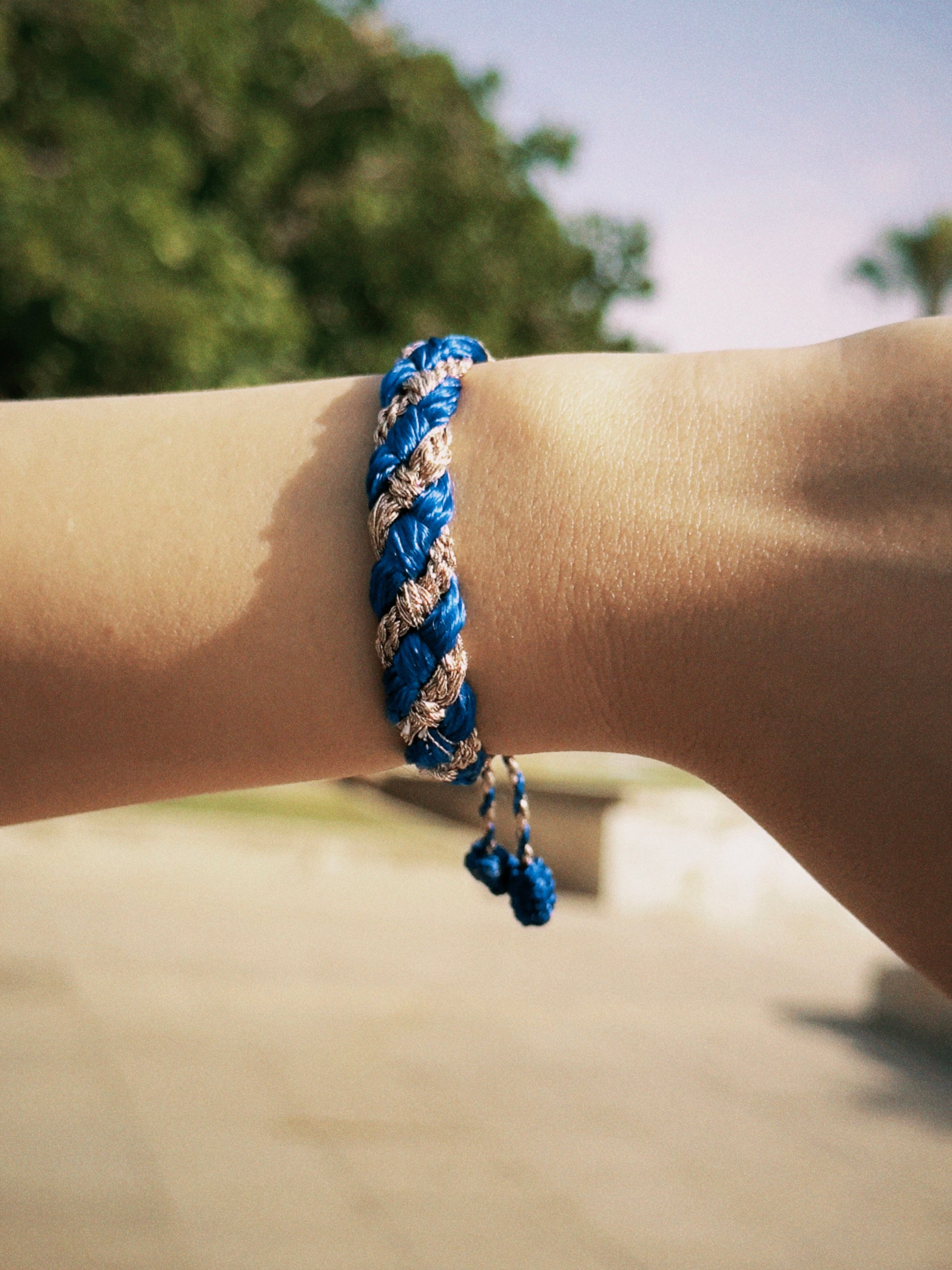 Each piece is handwoven with care — a soft, radiant blend on an adjustable band.