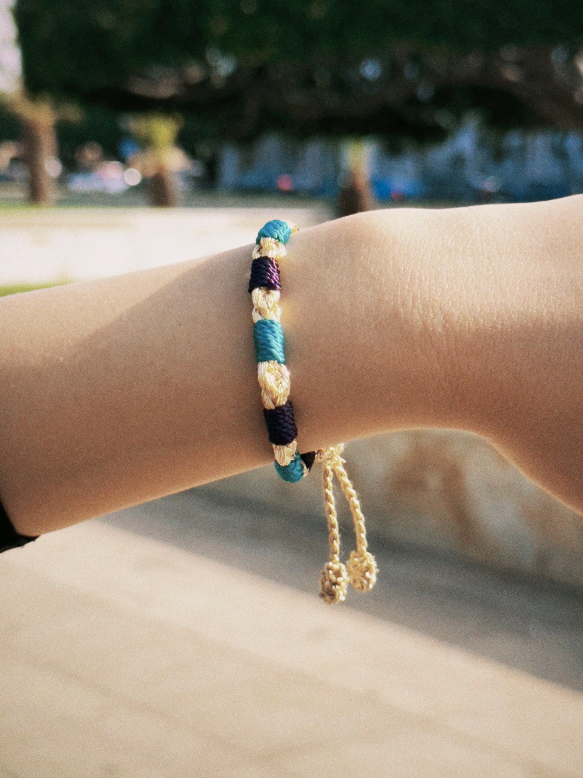 Inspired by the mystic elegance of Sufi heritage, this bracelet is handwoven with golden skalli and enhanced with rich, vibrant tones. A symbolic piece designed for the woman who embodies spirituality, strength, and grace.